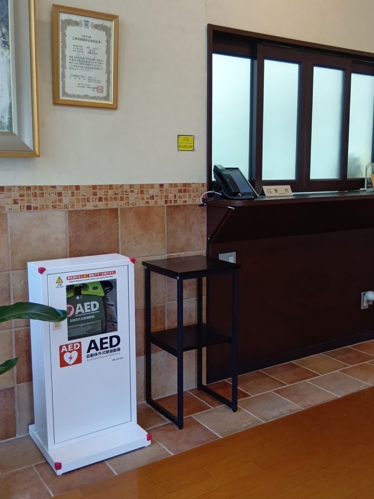 本社と工事事務所に AED(自動体外式除細動器) を設置いたしました。